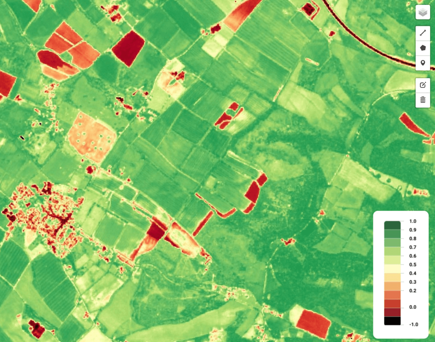 The normalized difference vegetation index (NDVI) was developed in the 1970s. It is commonly used to analyze multispectral satellite images. The objective is to create crop health maps and define management zones.